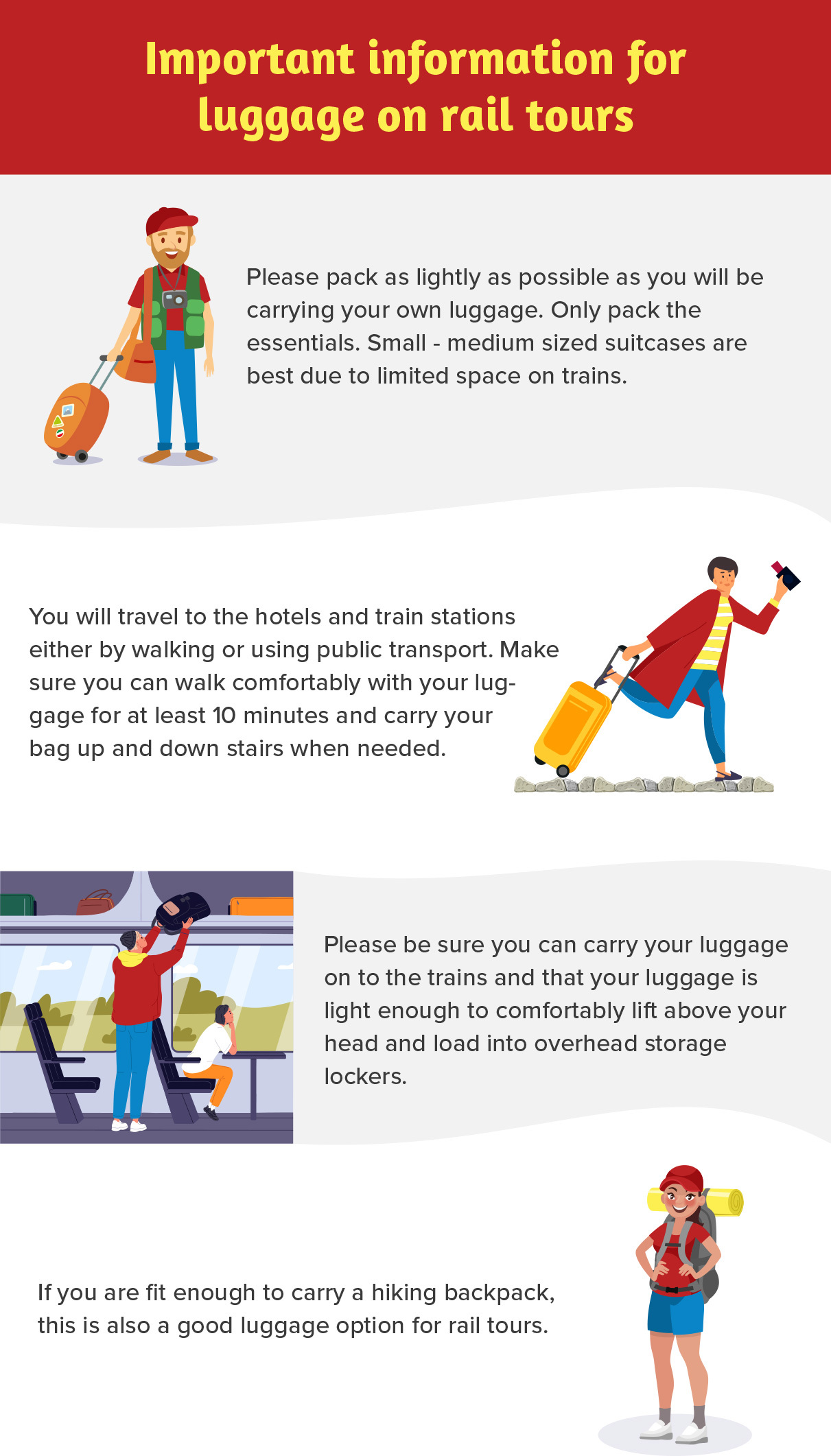 Related: Take a look at our blog to find out more information about how to pack for a rail tour.