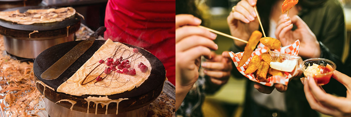 Almost every city or town has its ‘local thing’ when it comes to street food. In the Netherlands, it’s bitterballen and poffertjes. In Greece it’s Souvlaki. Germany has hot pretzels; France has crêpes. Your holiday is not complete until you’ve eaten this piping hot from a street vendor.